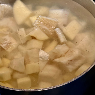 1 box of salt cod (1 pound) soaked 24 hours in the refrigerator with several changes of water - see intro above.