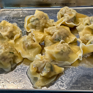 Koji Cooks Wontons - prepared and lightly tossed with sesame oil, if desired.